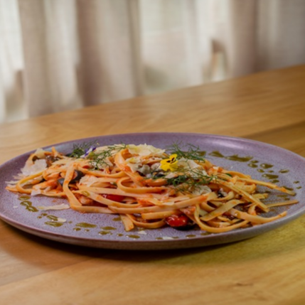Pasta fresca acompañada de tu elección de salsa y con parmesano rallado.