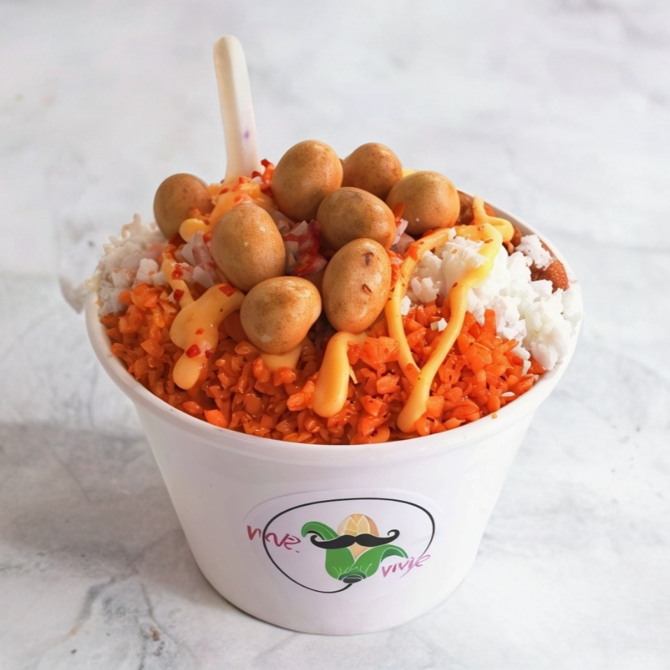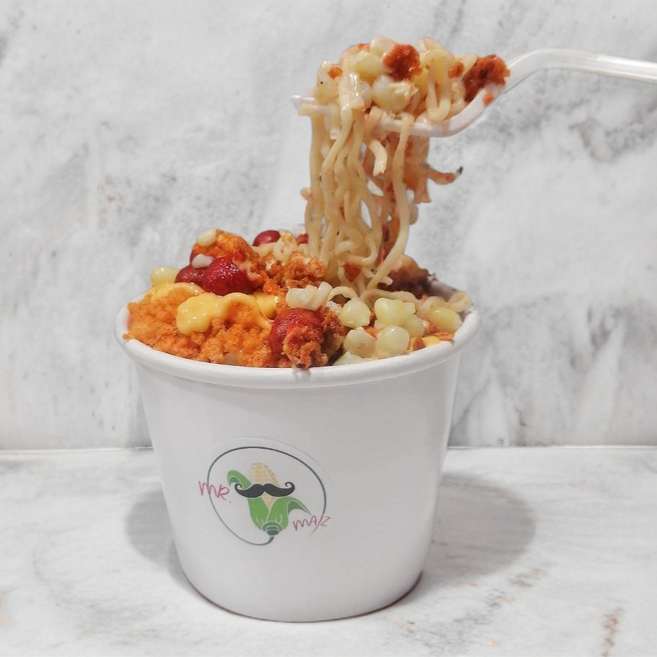 Sopa Maruchan, esquites, mayonesa, doble queso, limón, papas, cacahuates y salsas a elegir.