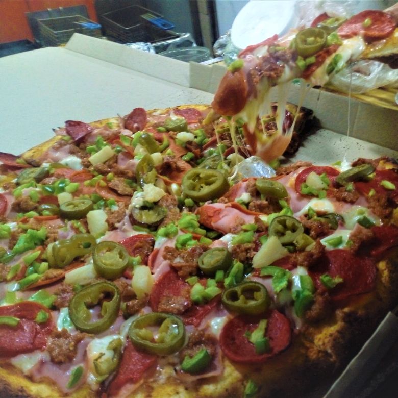 Elige el tamaño. Jamon ,peperonni, chorizo,pimiento morron, cebolla, jalapeño y piña