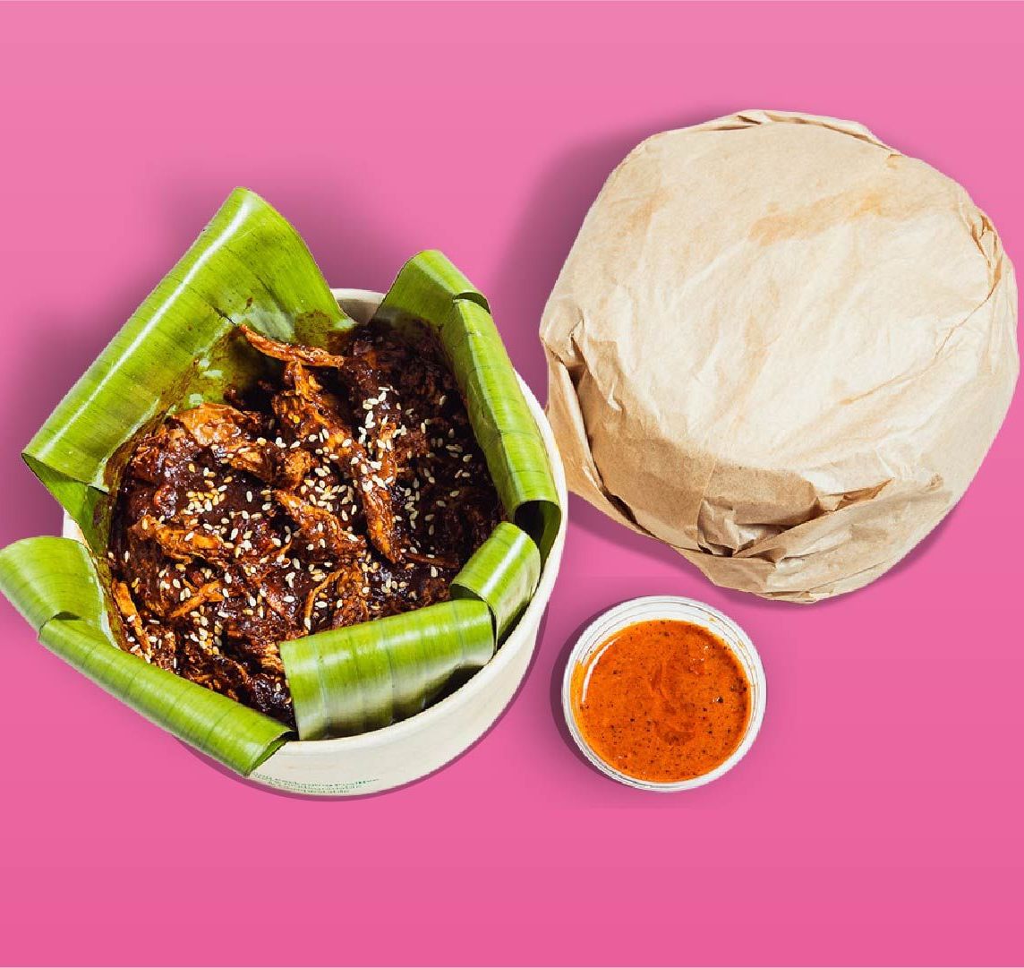 Generosa porción de mole con pollo + medio kilo de tortillas recién hechas. ¡Rinde para 10 tacos!