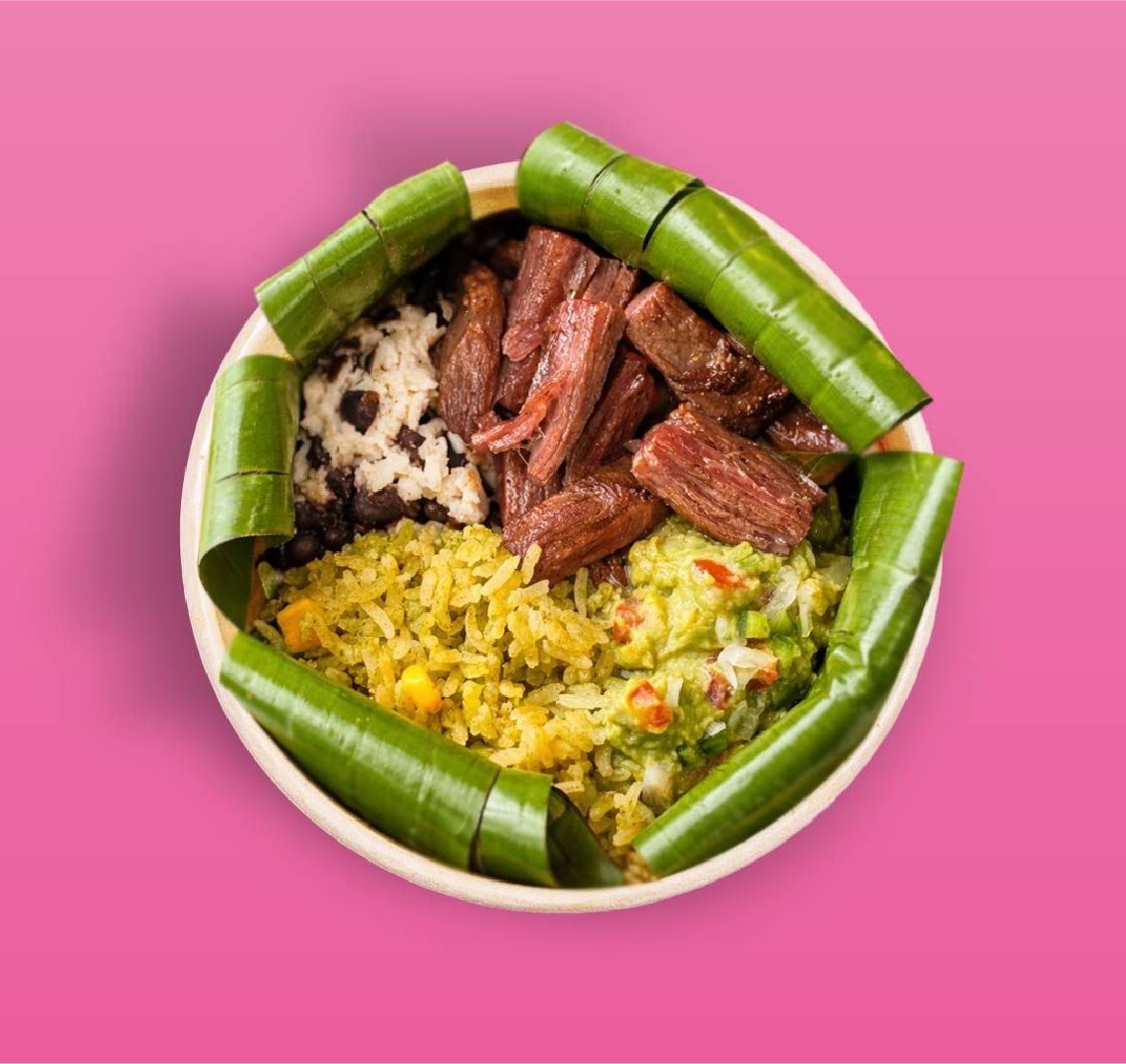 ¡Una carnita asada en un bowl! Jugosa arrachera Choice, guacamole, arroz poblano y frijolitos de la olla. (Incluye tortillas recién hechas)