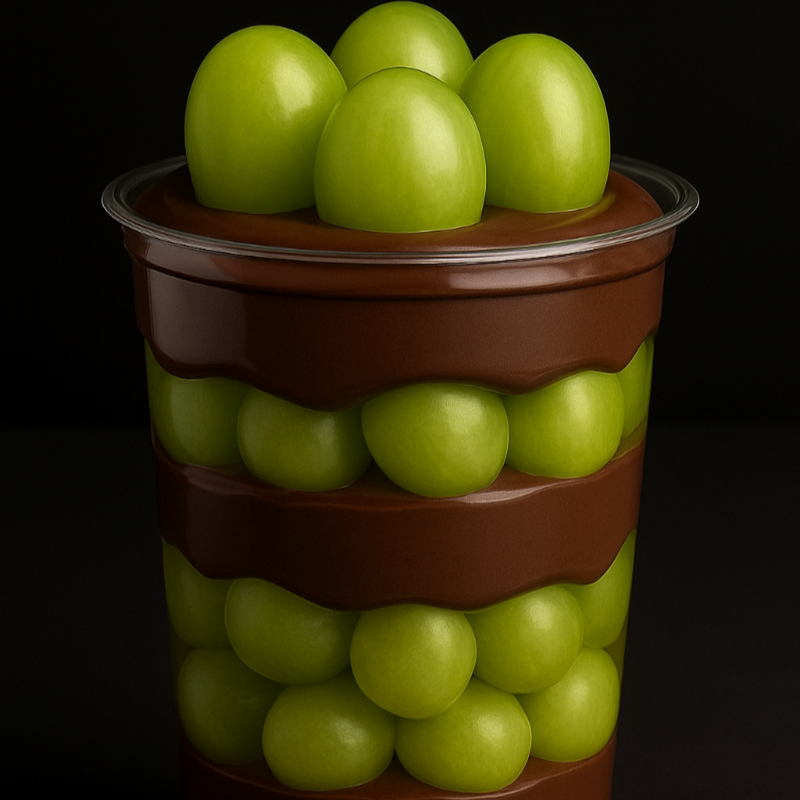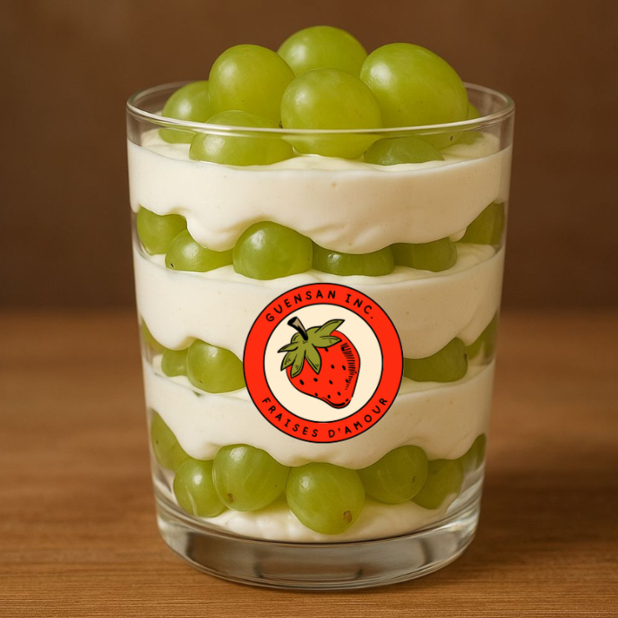 capas de uva verde fresca con capas de crema original de la casa y toppings a elegir