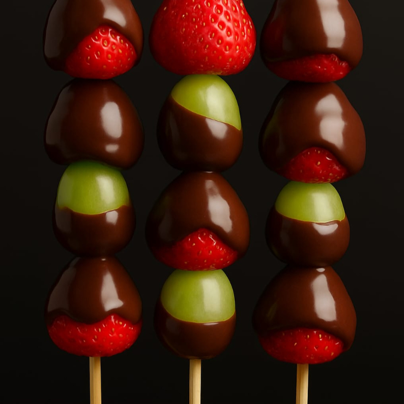2 brochetas de fruta de 30 cm cubiertas en chocolate de fuente