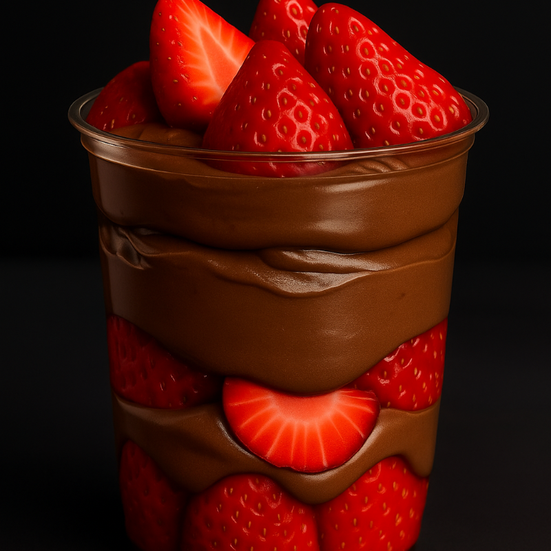 capas de fresa fresca con capas de crema original de la casa y toppings a elegir