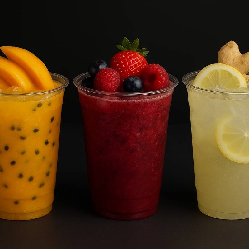 capas de fresa fresca con capas de mousse de coco y queso crema ,coco deshidratdo y toppings a elegir