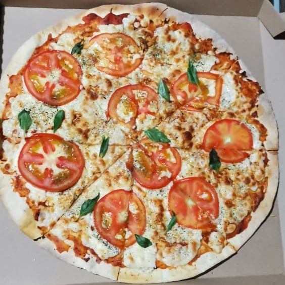 Masa romana de corte fino que resalta los sabores del Albahaca, jitomate bola, pimienta molidsa fresca y queso. Con un diametro de 35 cm (8 rebanadas proporcionales)