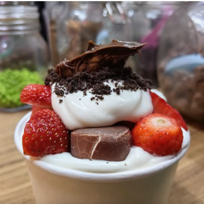 Acompaña tus fresas con dos toppings y la jalea de tu preferencia.