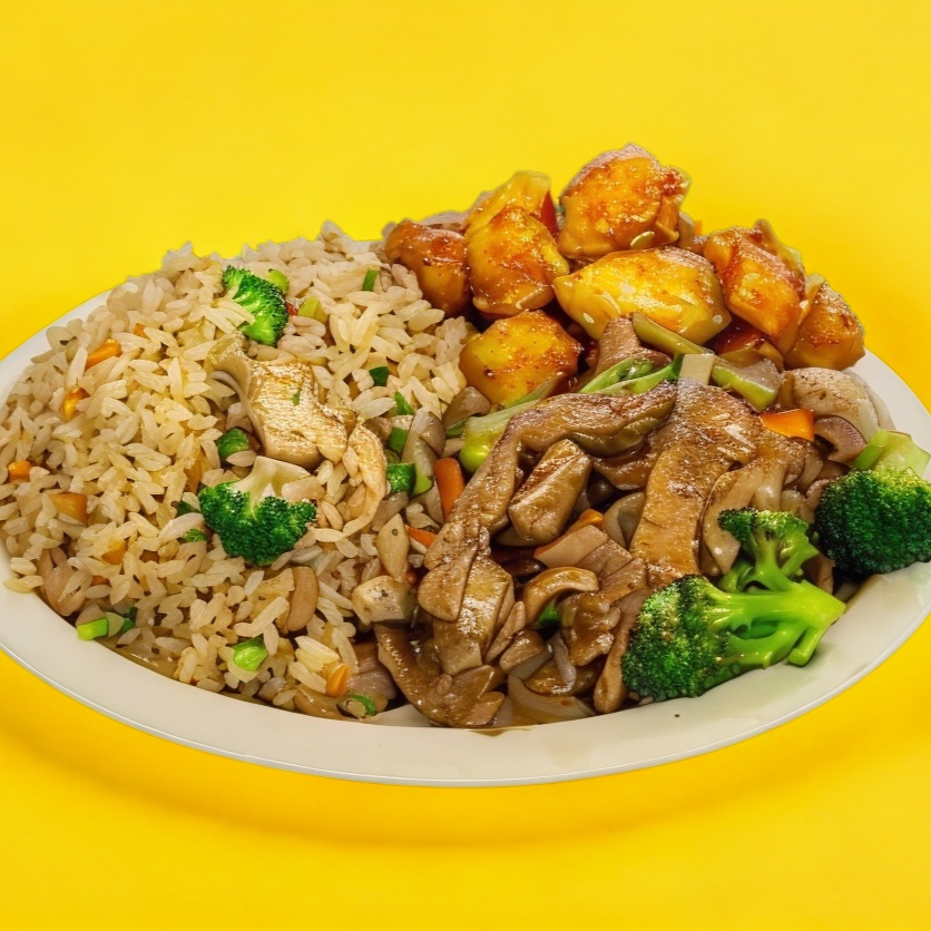 Arroz, espagueti y tres guisados a elección