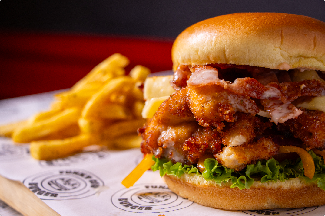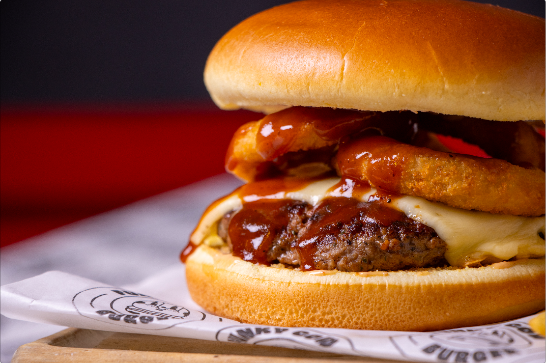 Generosos 150 g de carne de res con aros de cebolla, rico queso fundido y salsa grill BBQ. Dulce, ahumadita y con mucha actitud, servida con 220 g de papas y refresco.