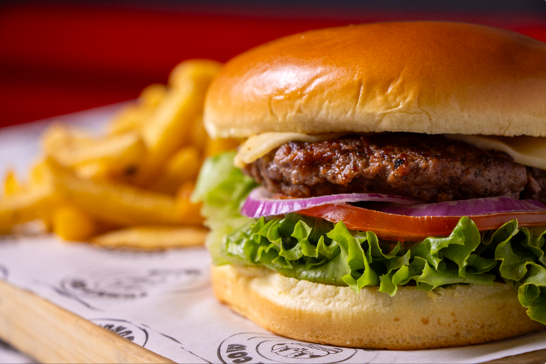 Jugosos 180 g de carne de res selecta, coronada con nuestro rico queso, y los siempre frescos lechuga, jitomate y cebolla del día , en pan suave. La Burger clásica, siempre deliciosa, con 220 g de papas a la francesa y refresco.