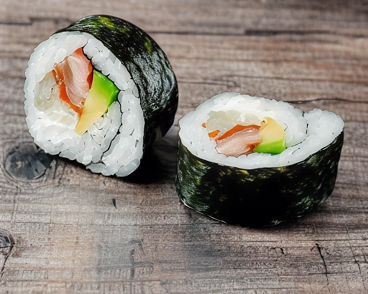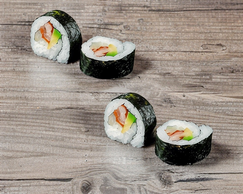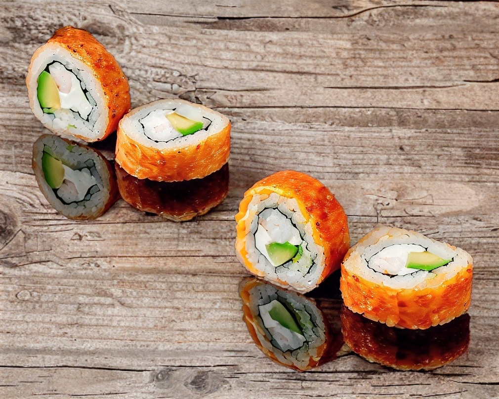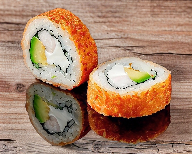 8 rollos rellenos de queso crema, un toque de aguacate, alga nori, empanizados
