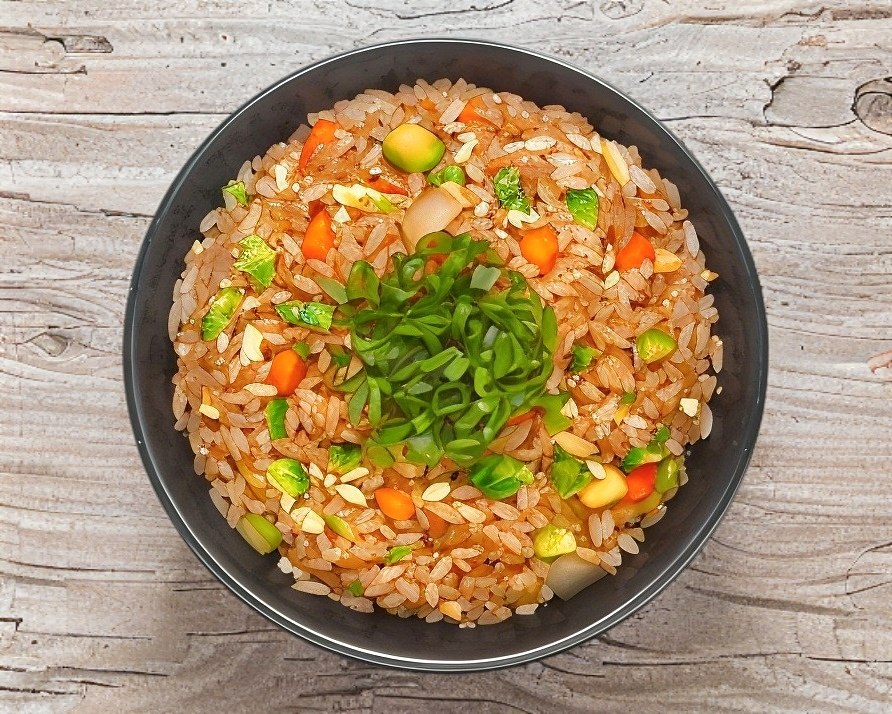 Arroz frito con zanahoria , calabaza , pimienta y salsa de soya