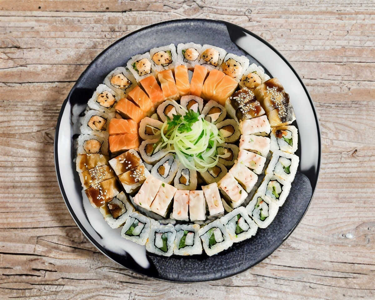 24 Rollos de distintos sabores , rellenos de zanahoria, pepino, queso philadelphia, camaron y cangrejo