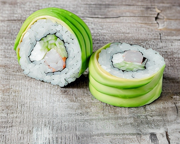 8 piezas rellenas de camarón, queso philadelphia, aguacate, zanahoria y pepino