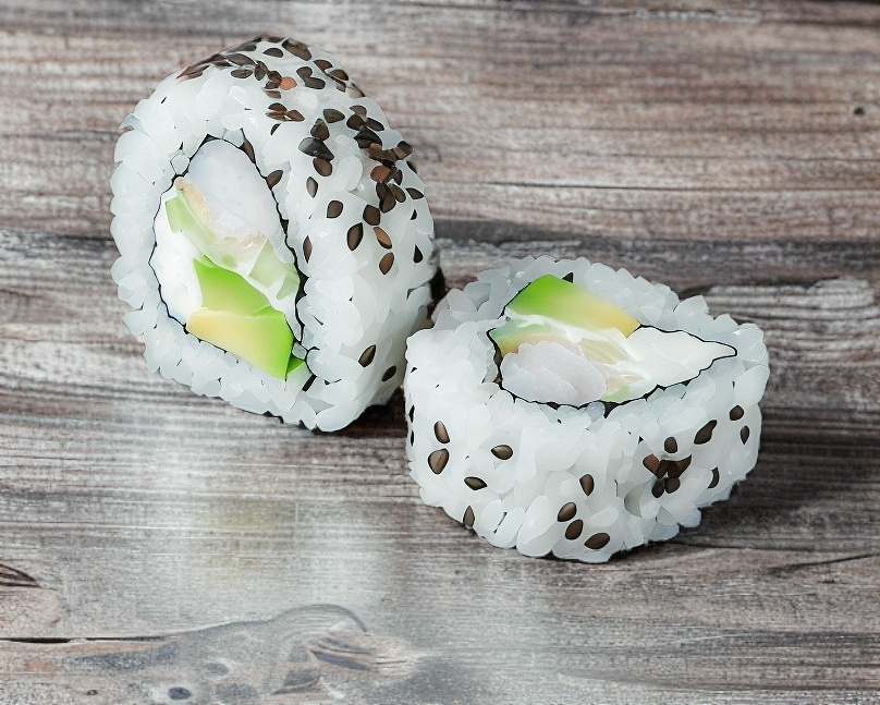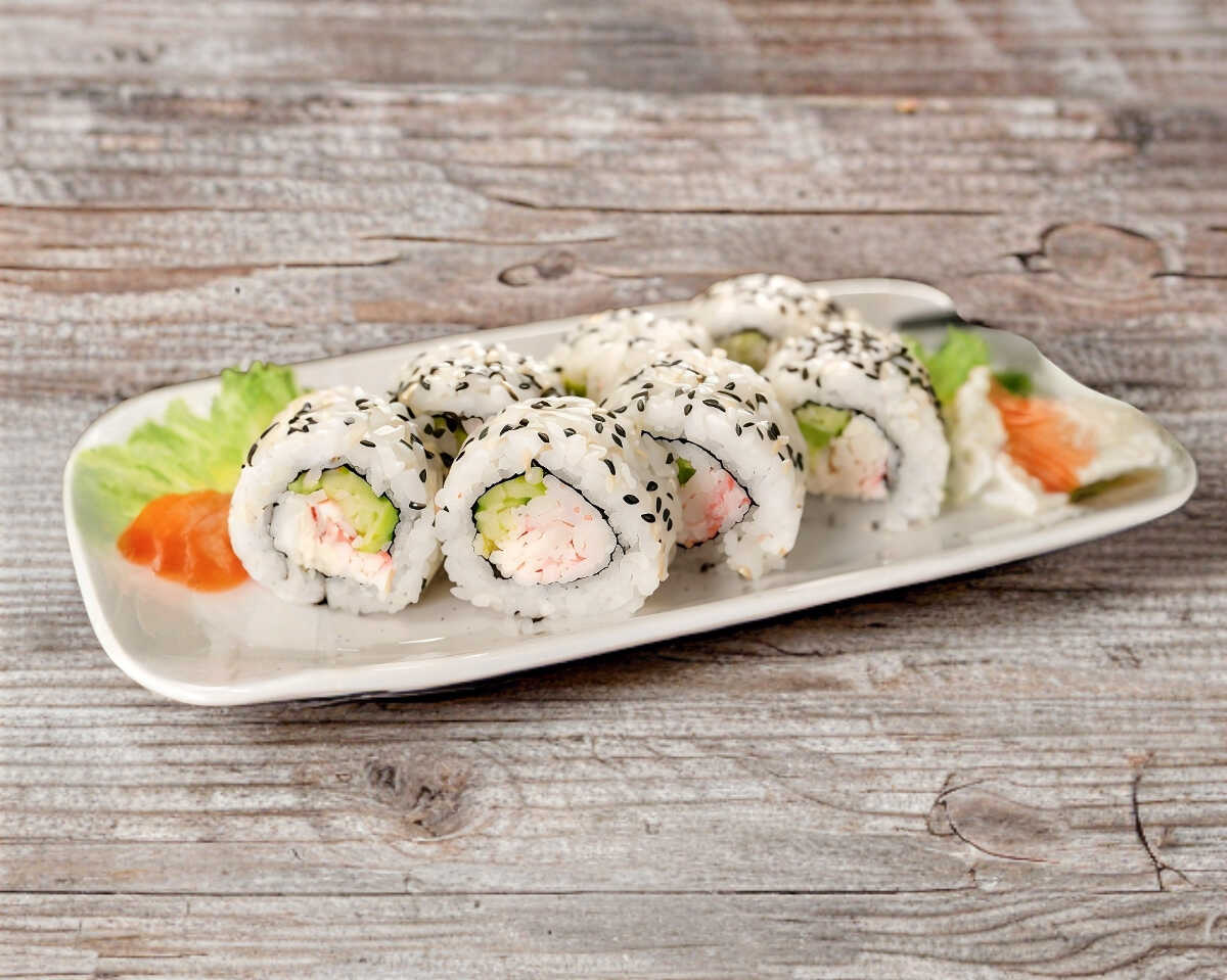 8 piezas rellenas de camarón, queso philadelphia,aguacate, zanahoria y pepino