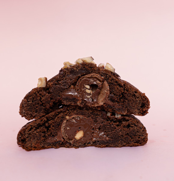 Galleta de brownie rellena de Ferrero y Nutella cubierta con avellanas. 150g