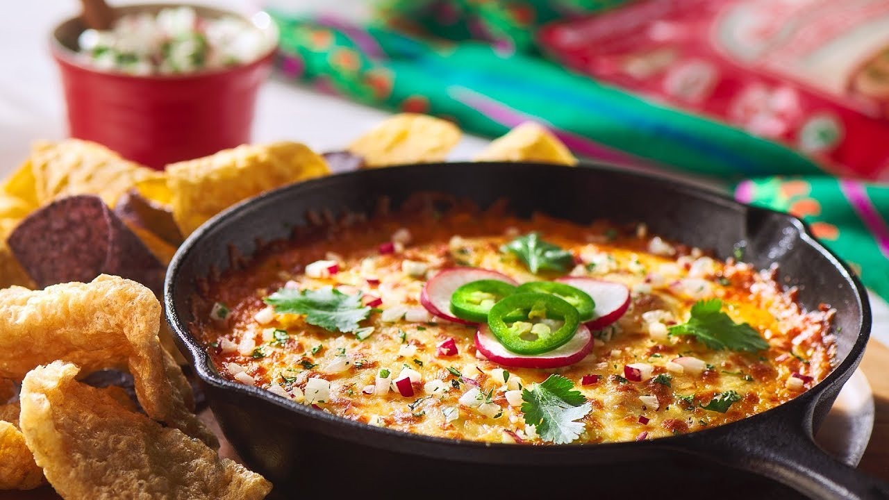 Queso manchego a la mexicana, acompañado de 3 piezas de tortilla de harina.