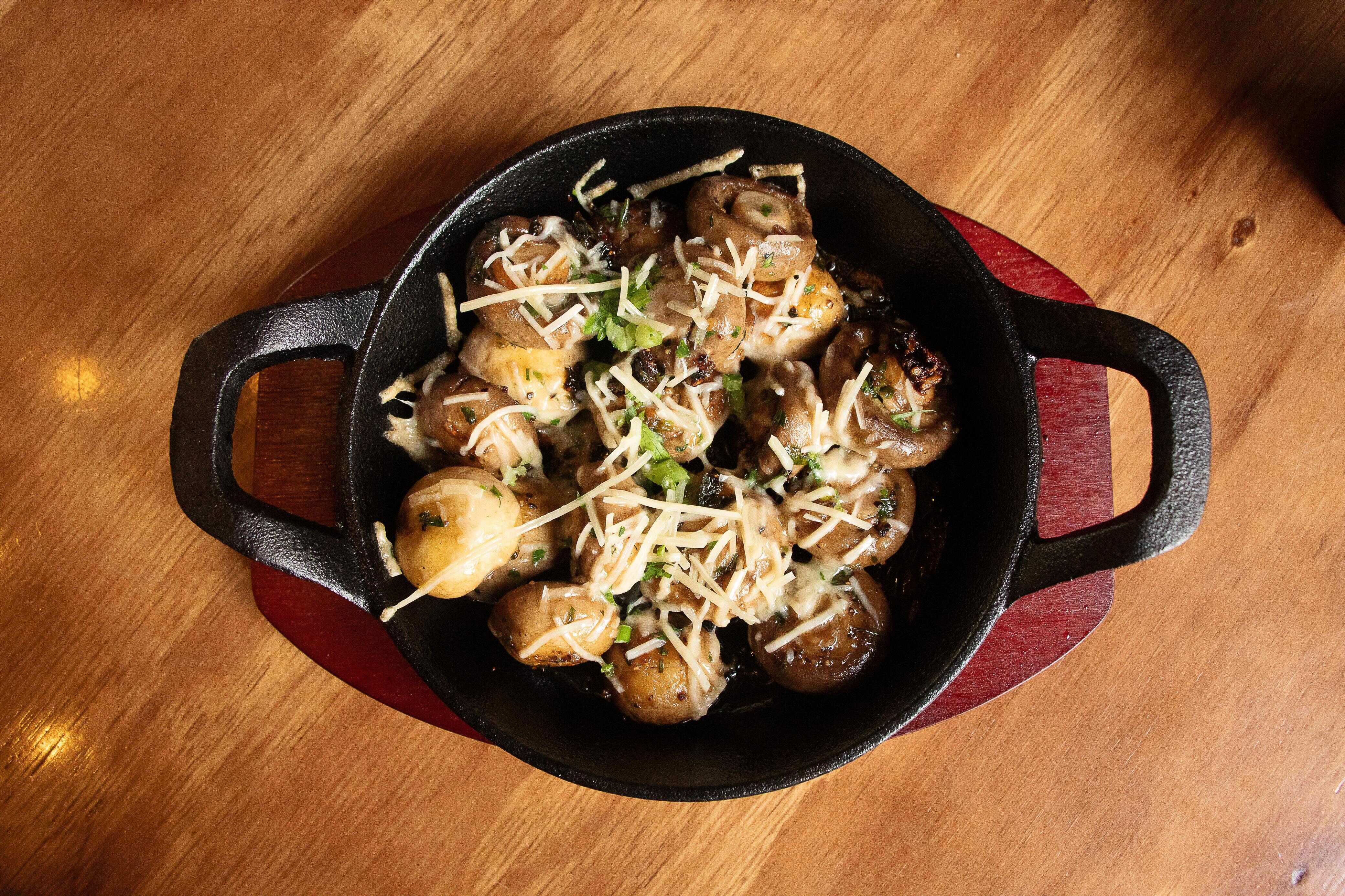 Champiñones frescos salteados al provenzal con perejil y queso parmesano.