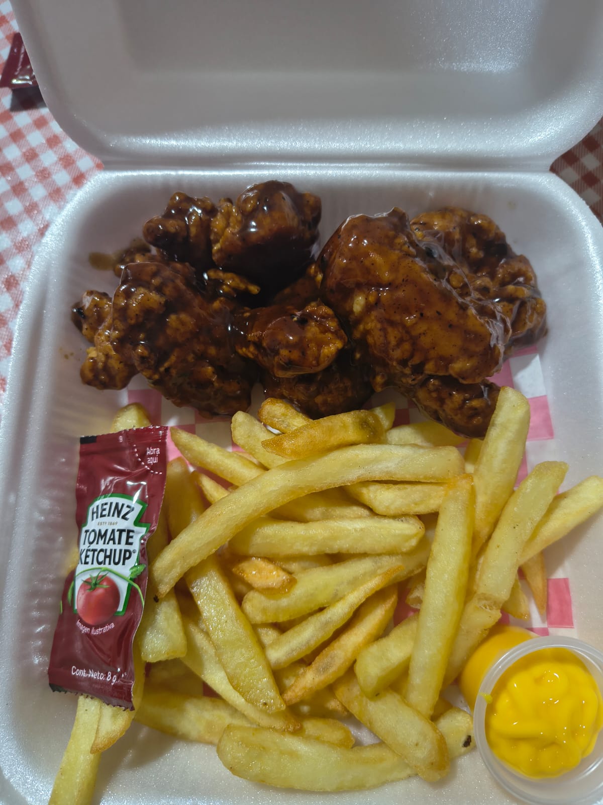 Boneless 200 g, sabor a elección con una porción individual de papas fritas.