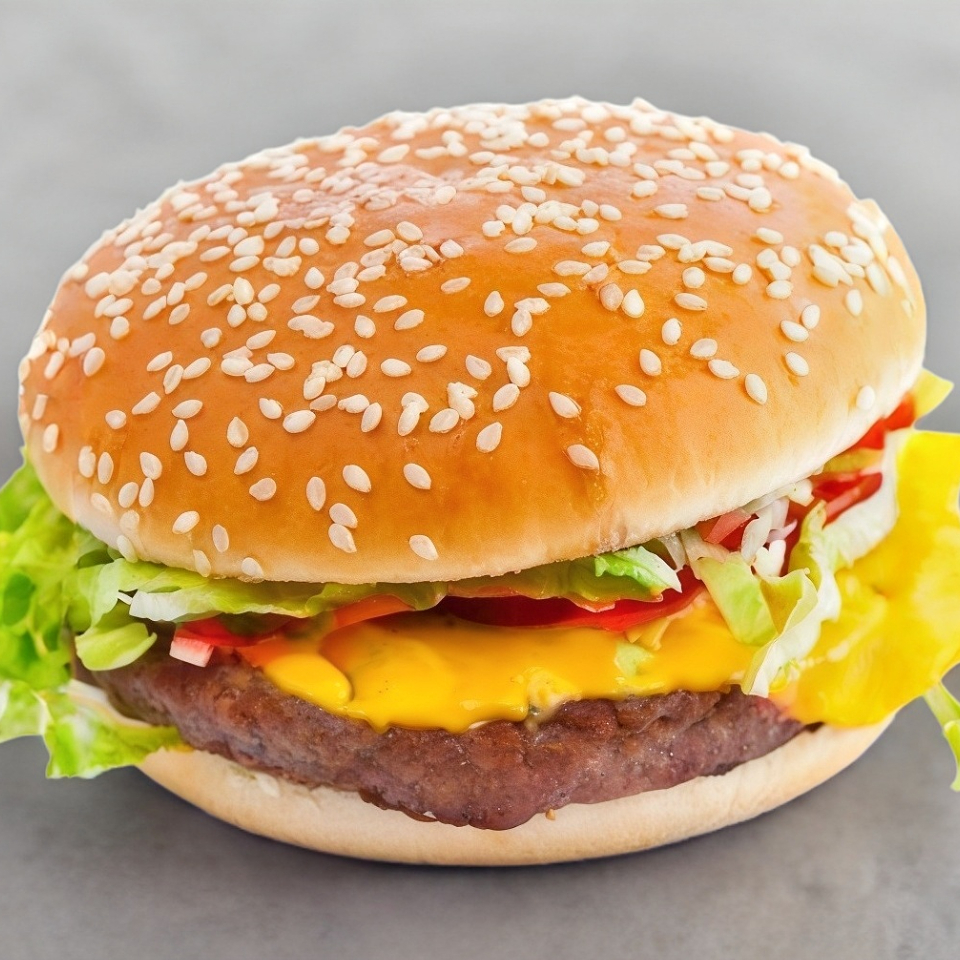 Deliciosa carne 80/20, queso oaxaca, queso tipo americano, lechuga, jitomate, cebolla, chiles, aderezos.