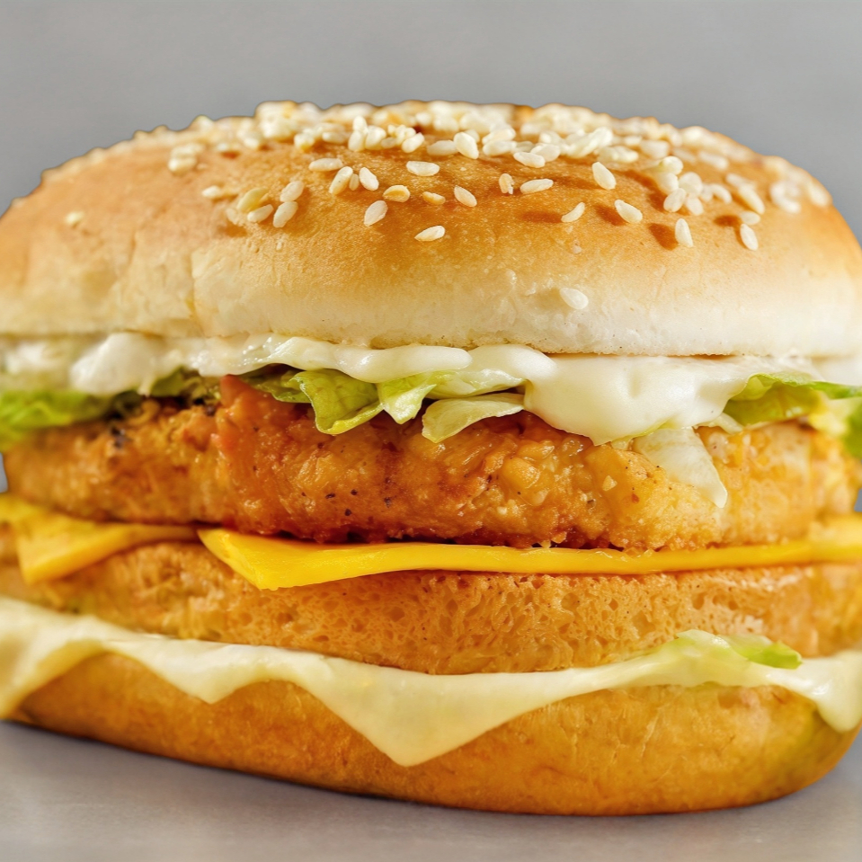 Deliciosa y jugosa carne de pollo empanizada, queso tipo americano, queso oaxaca, lechuga, jitomate, cebolla, chiles aderezos.