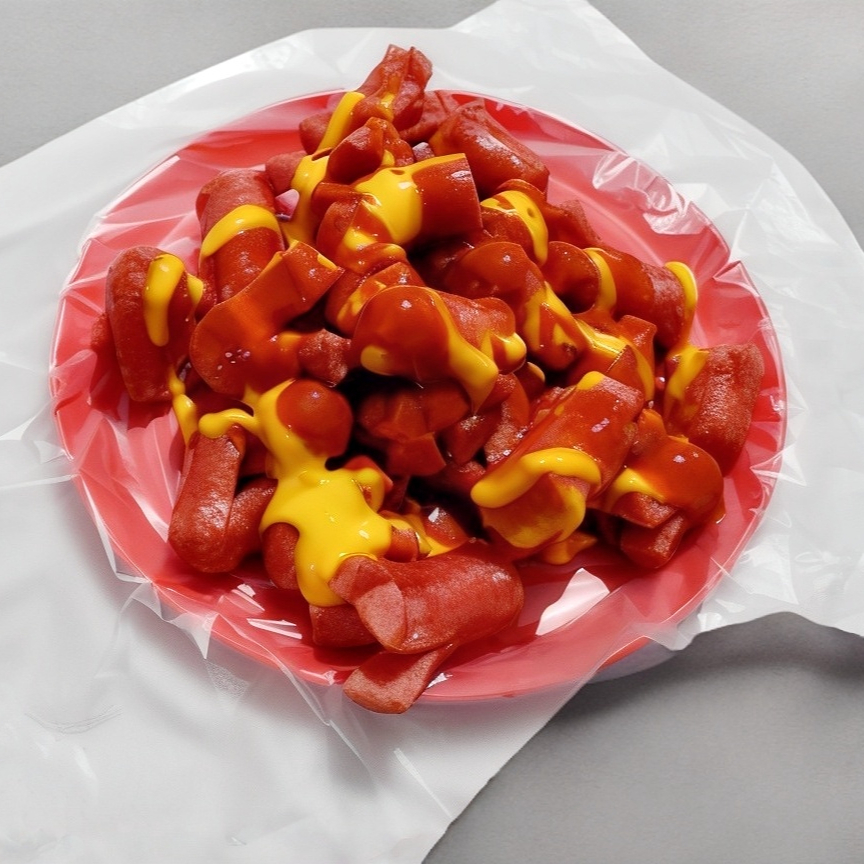Salchichas fritas en forma de pulpo con catsup queso y salsa