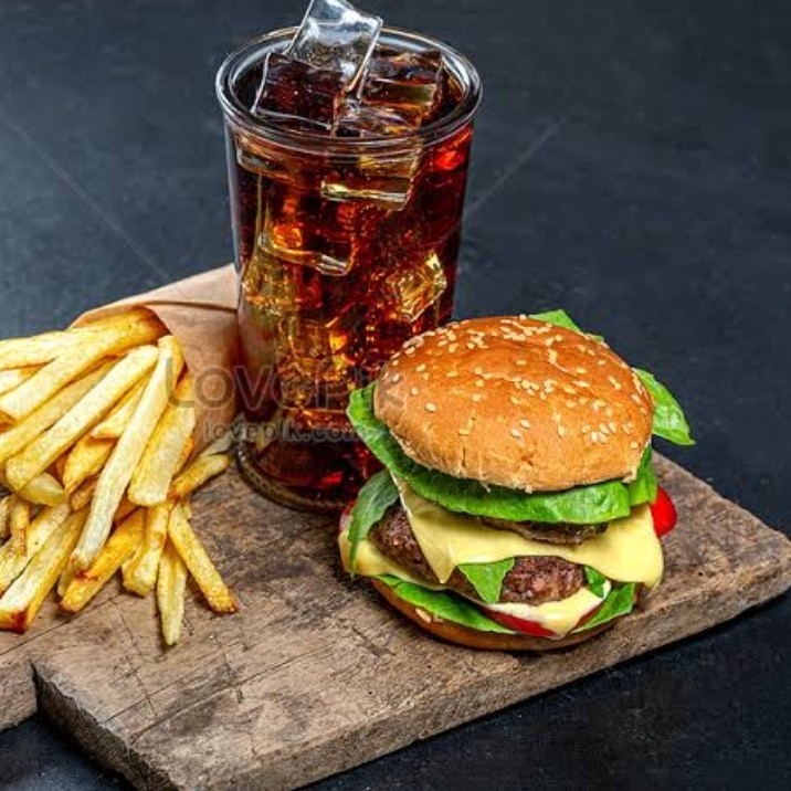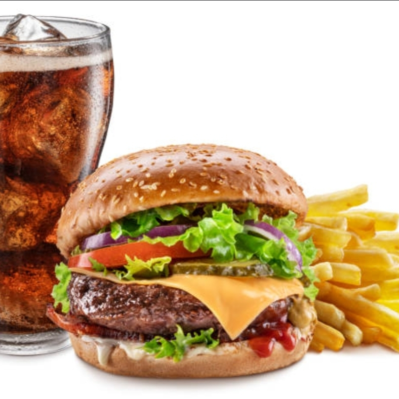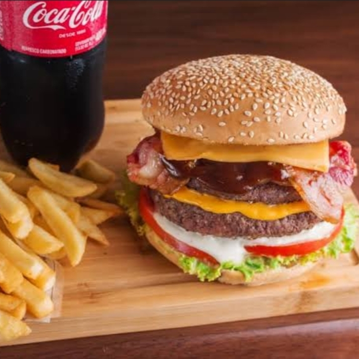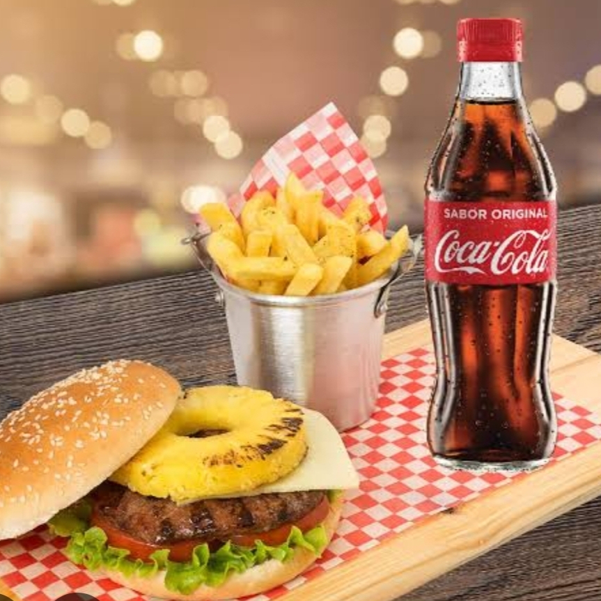 Hamburguesa Hawaiana Doble Carne, Papas y Refresco