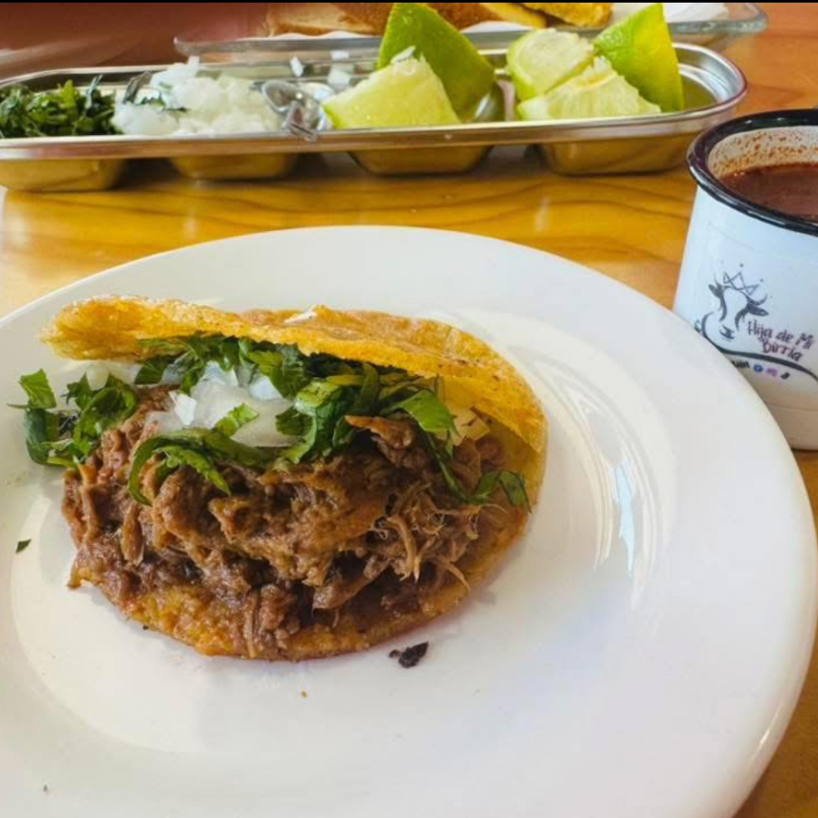 Quekabirria chica con tortilla de maíz. (No incluye consome, imagen ilustrativa)