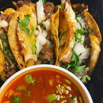 3 Tacos chicos blandos de birria con cebolla, cilantro y salsa tatemada (No incluye Queso)