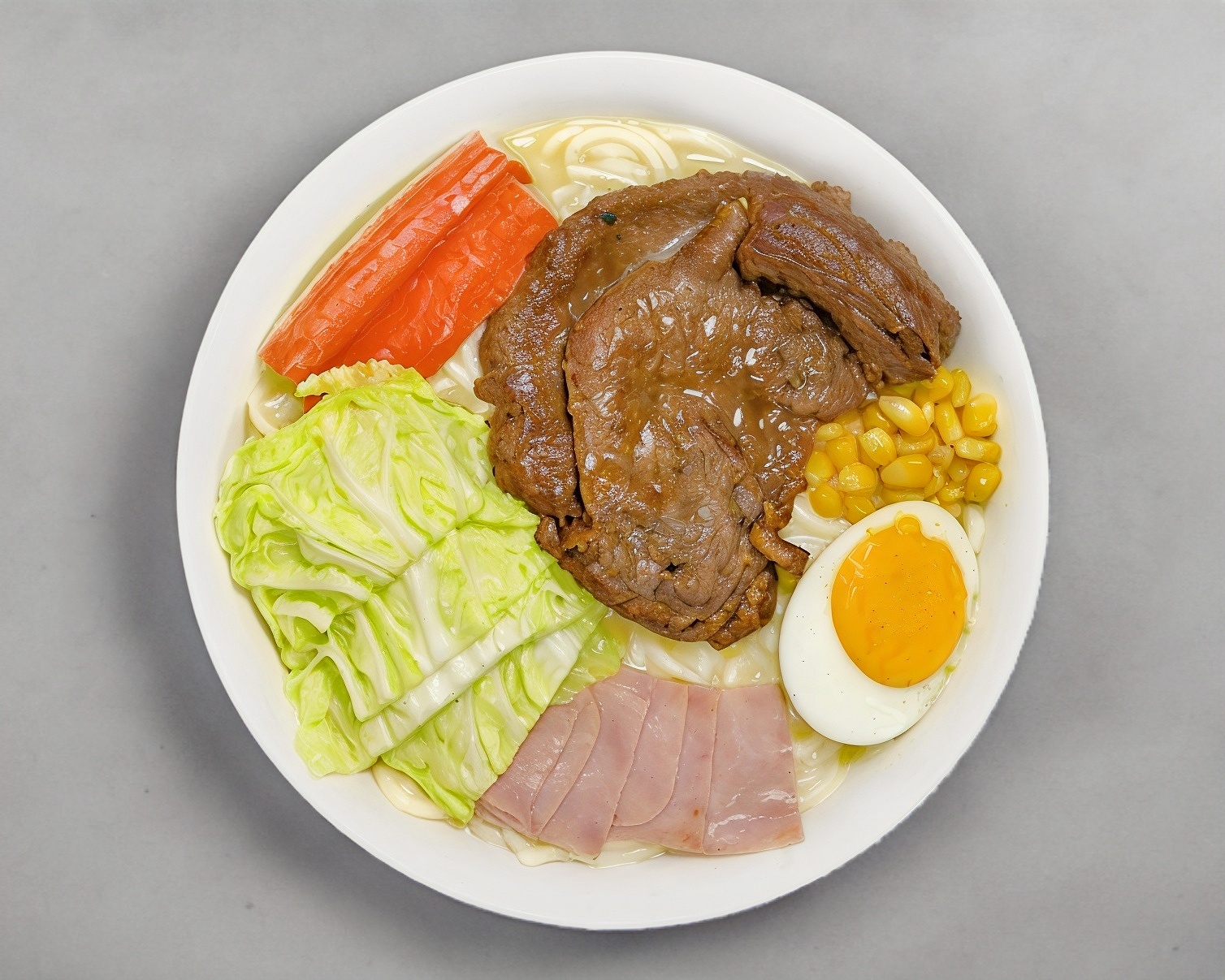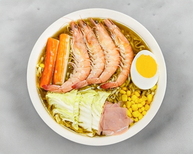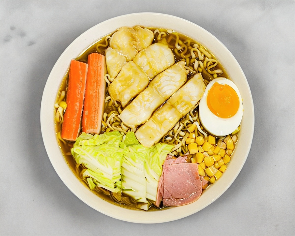 Con pasta udon, a base de caldo de umami, con un toque de salsa de soja y pescado, con guarniciones de verdura, elote, huevo, jamón, surimi y algas con ajonjolí, también puedes seleccionar tu caldo con o sin picante (shichimi).