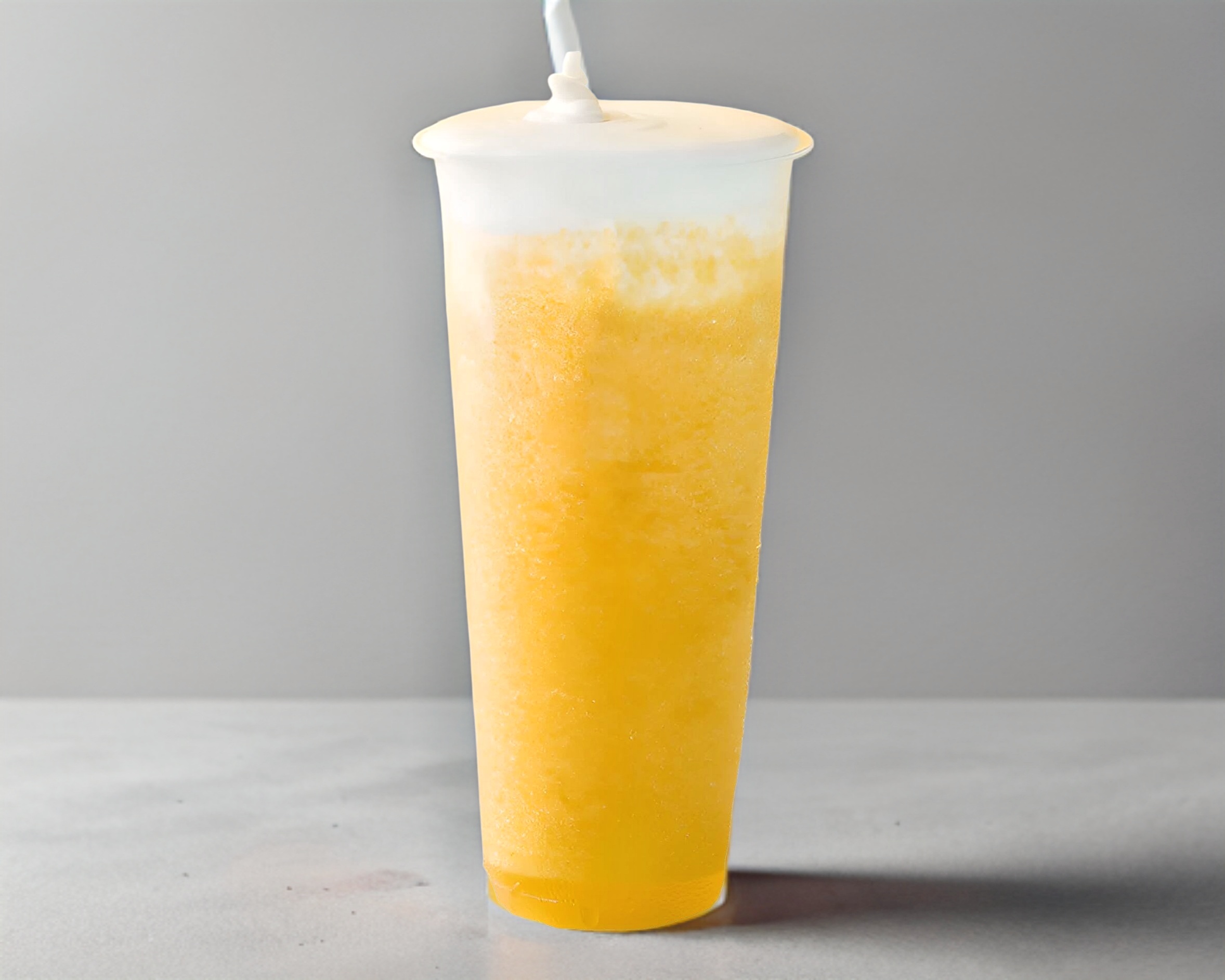 Un batido de mango cremoso, cubierto con una espuma de queso (cheese foam) que añade una textura suave y un sabor ligeramente salado que contrasta con la dulzura del mango.