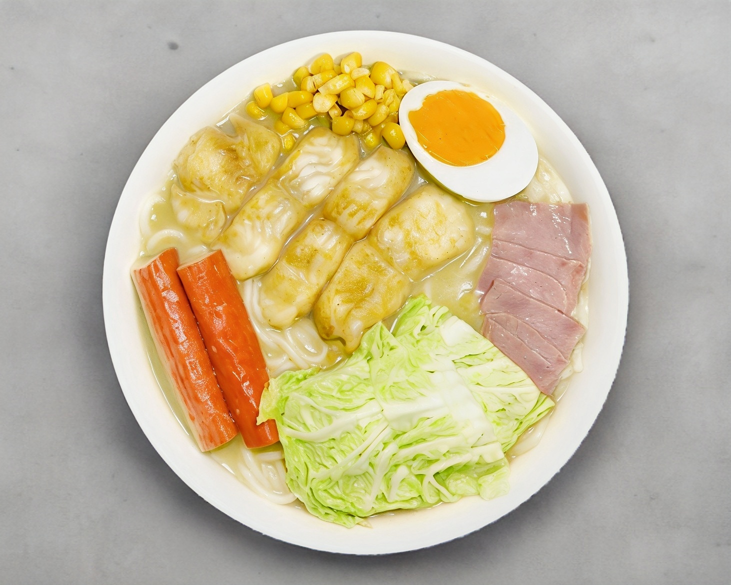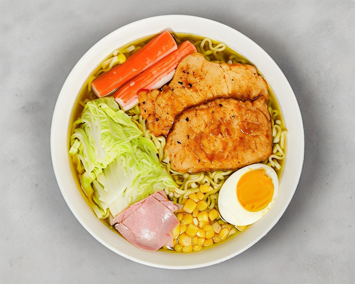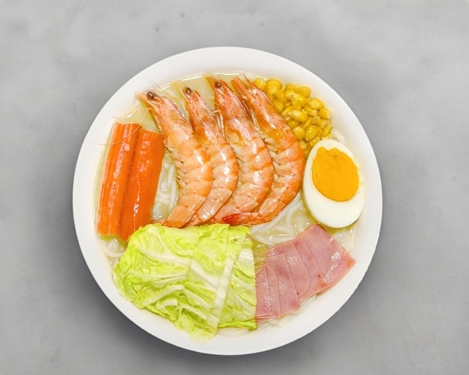 Con pasta de fideo de arroz a base de caldo de hueso de cerdo, un sabor inigualable, con guarniciones de verdura, elote, huevo, jamón, surimi y carne de cerdo, también puedes seleccionar tu caldo con o sin picante (chile de árbol en aceite).