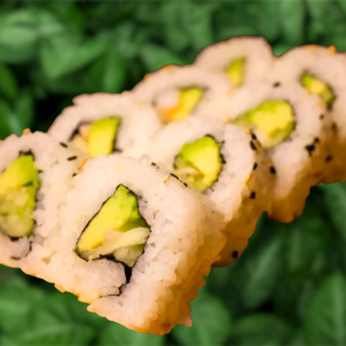 Por fuera: Empanizado. Por dentro: Aguacate, queso crema y proteína a elegir