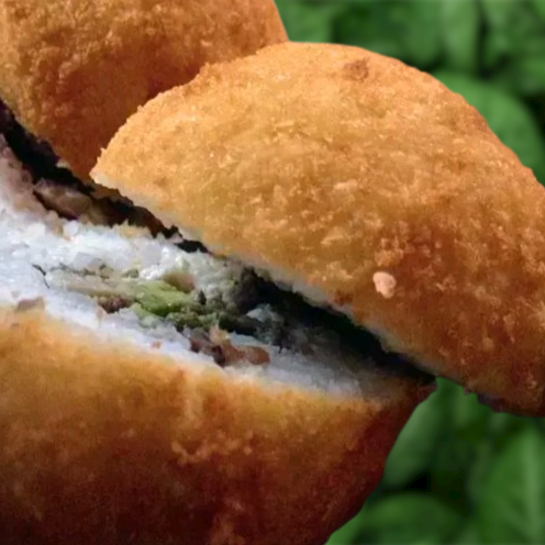 Por fuera: Empanizado. Por dentro: Queso Manchego, Aguacate y Chiles Toreados