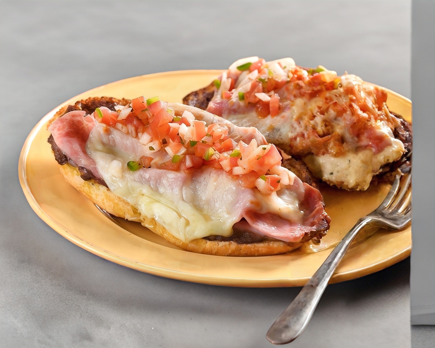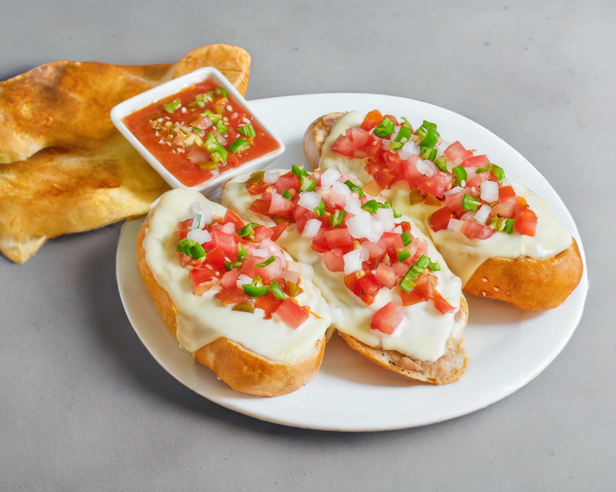 Orden de 3 con frijoles, jamon y queso manchego acompañado de pico de gallo