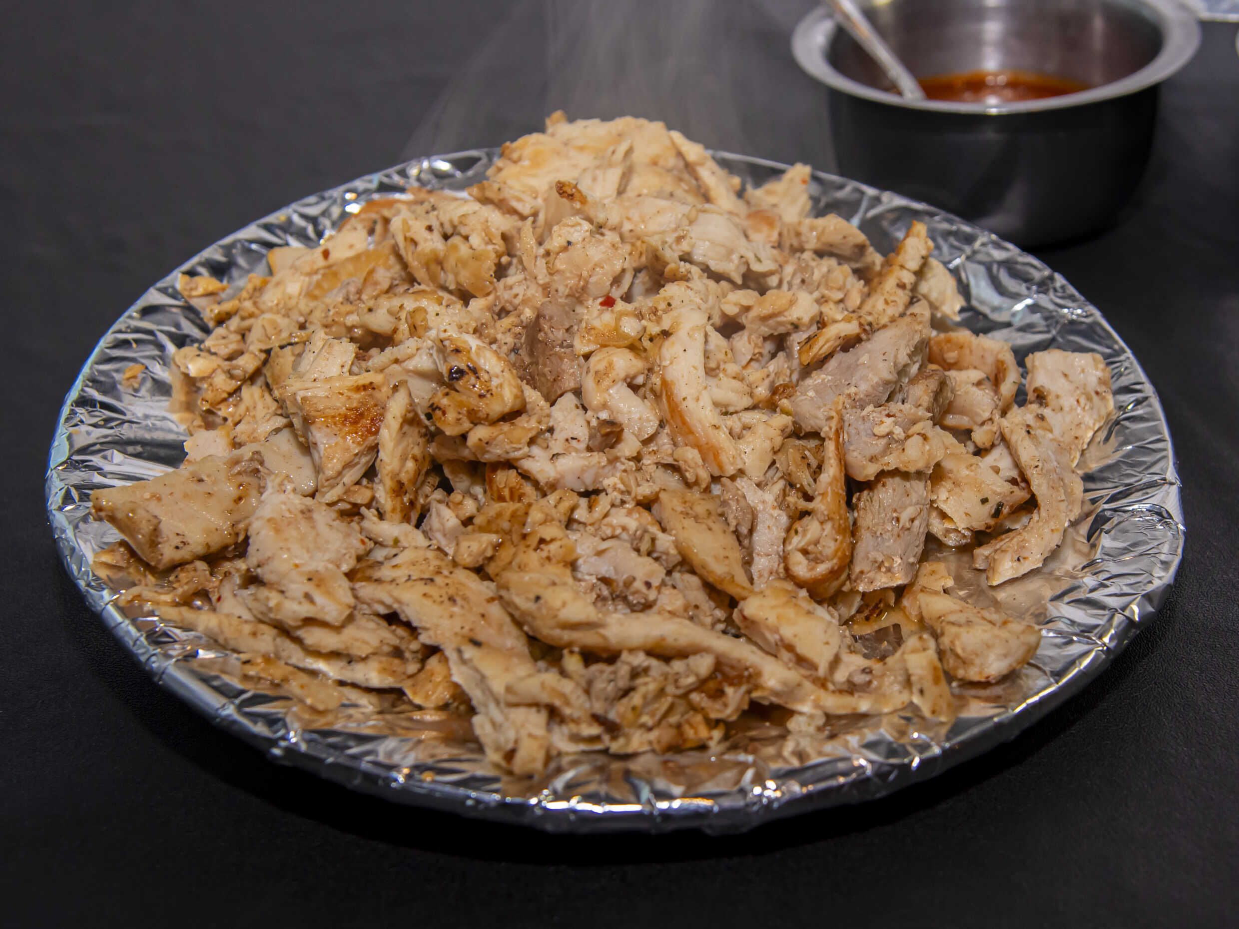 300 gramos de pollo adobado, tortilla, limones y salsa a elegir.