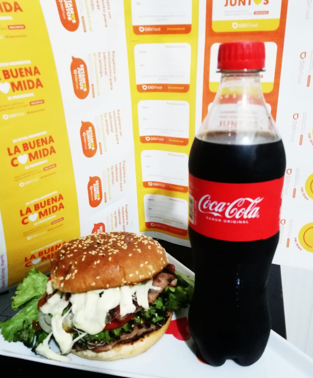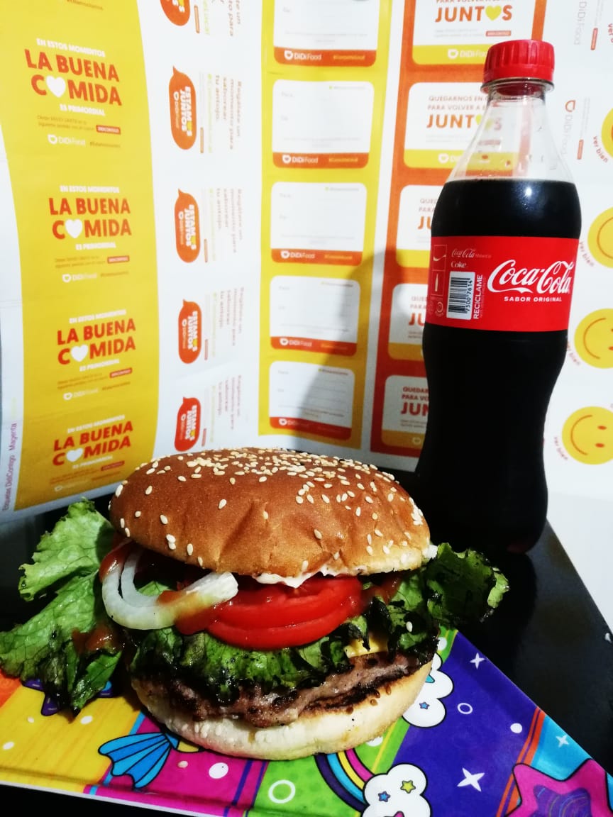 Hamburguesa con Queso oaxaca, papas a la francesa y coca de 600ml
