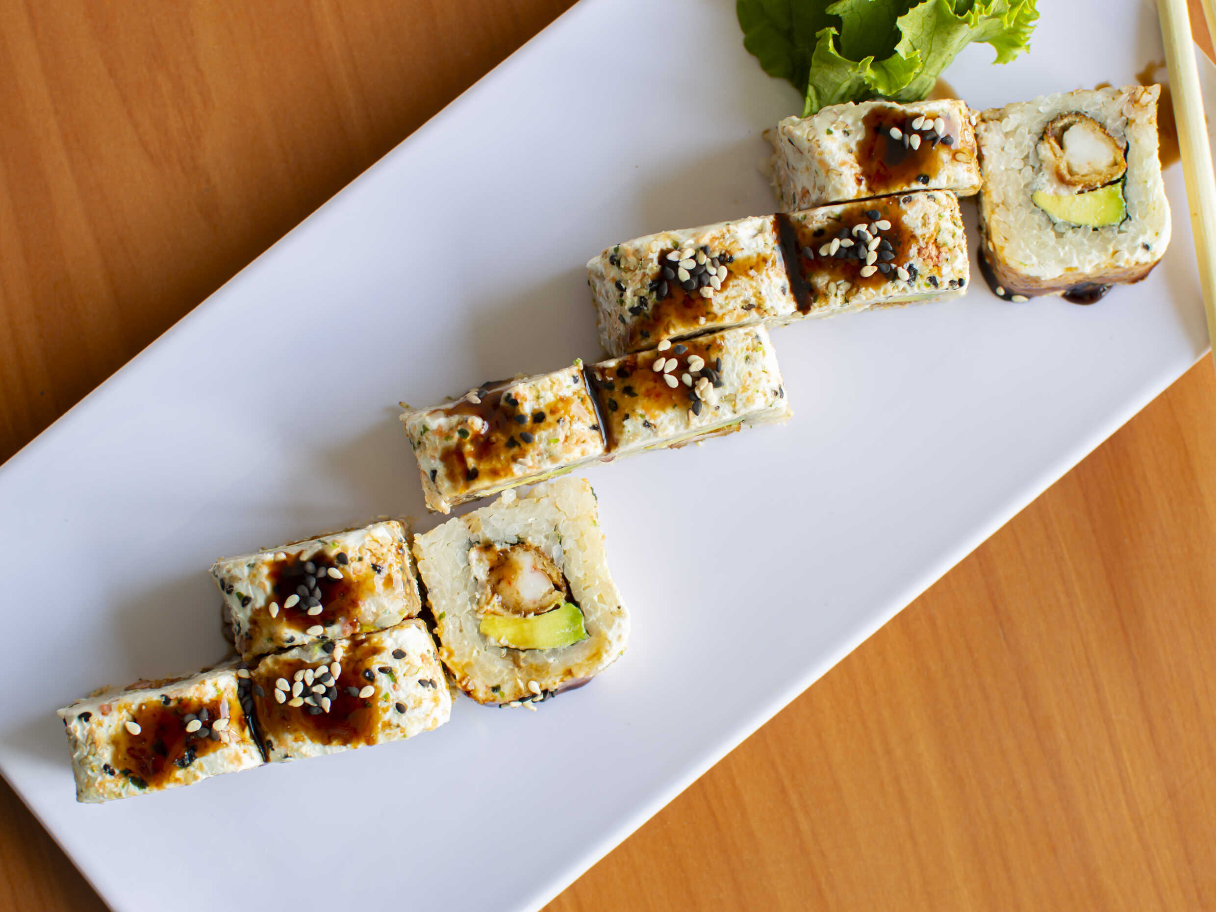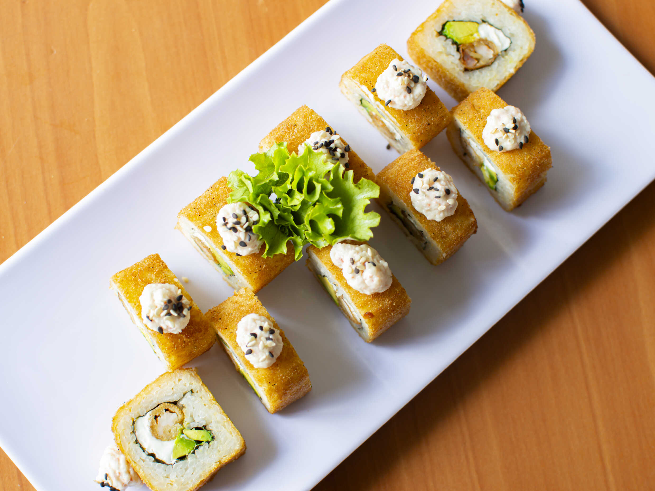 Aguacate, surimi, camarón; queso por fuera. (10bocados)