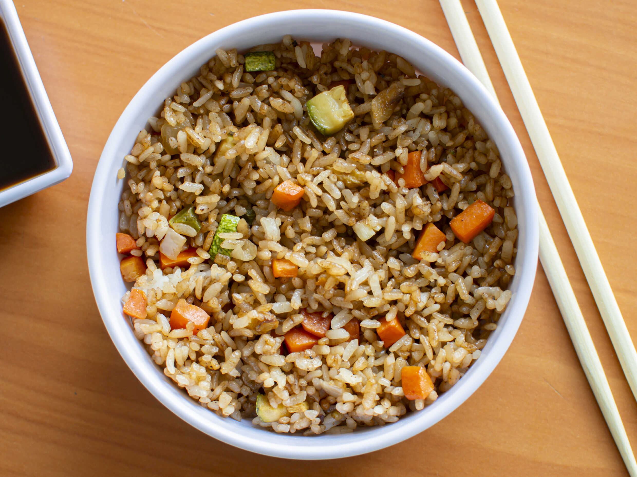 Arroz frito con verduras.
