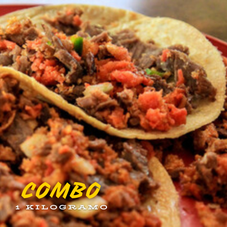 105 g de bistec macerado + 105g de longaniza + queso fundido + tortillas y puedes elegir otra carne de tu preferencia