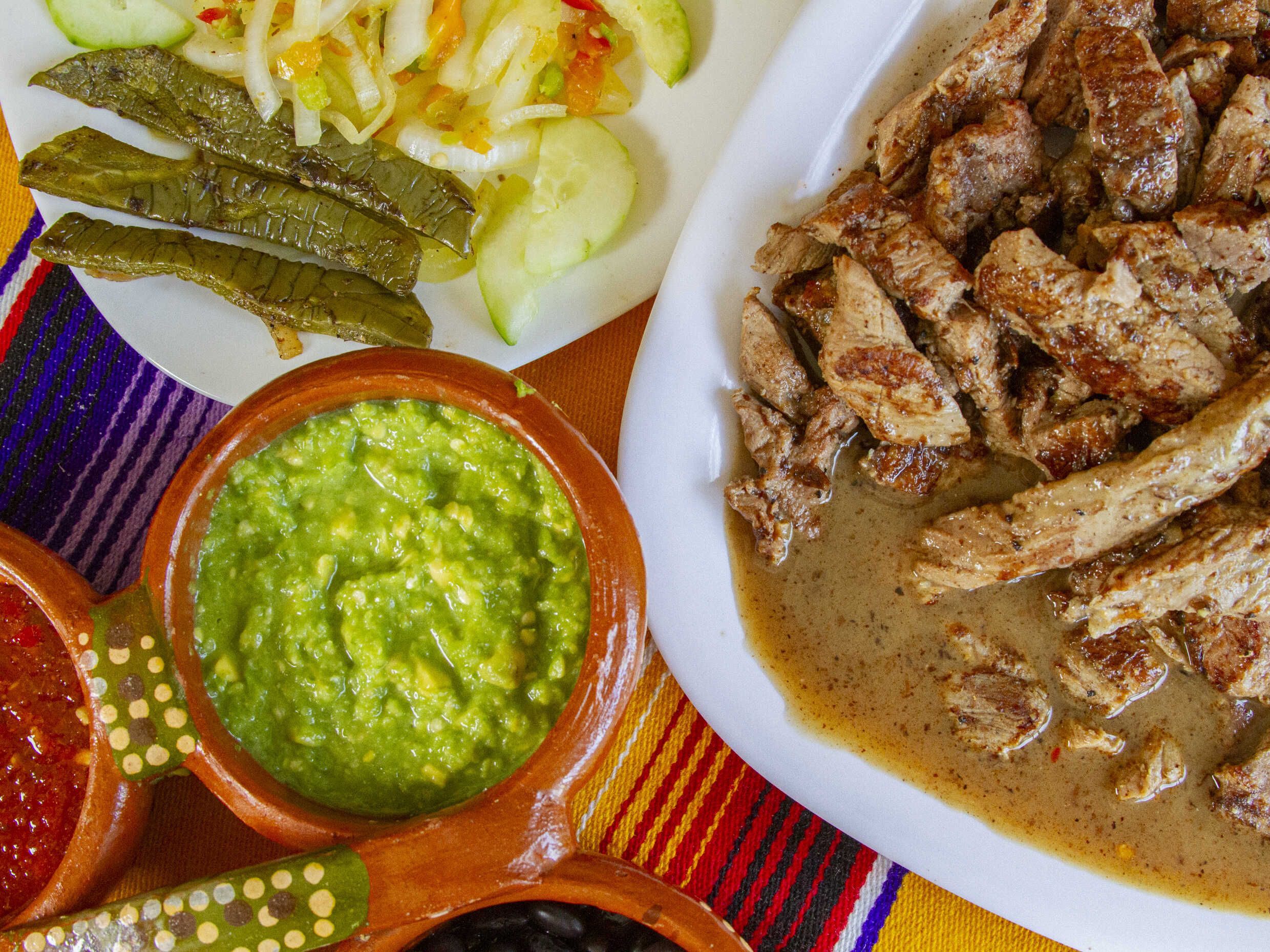 Bistec Rib- eye, sazonado con nuestra receta secreta, Incluye tortillas limones y todos los complementos de casa.