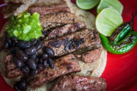 Arrachera asada al carbón jugosa y sazonada con ingredientes selectos