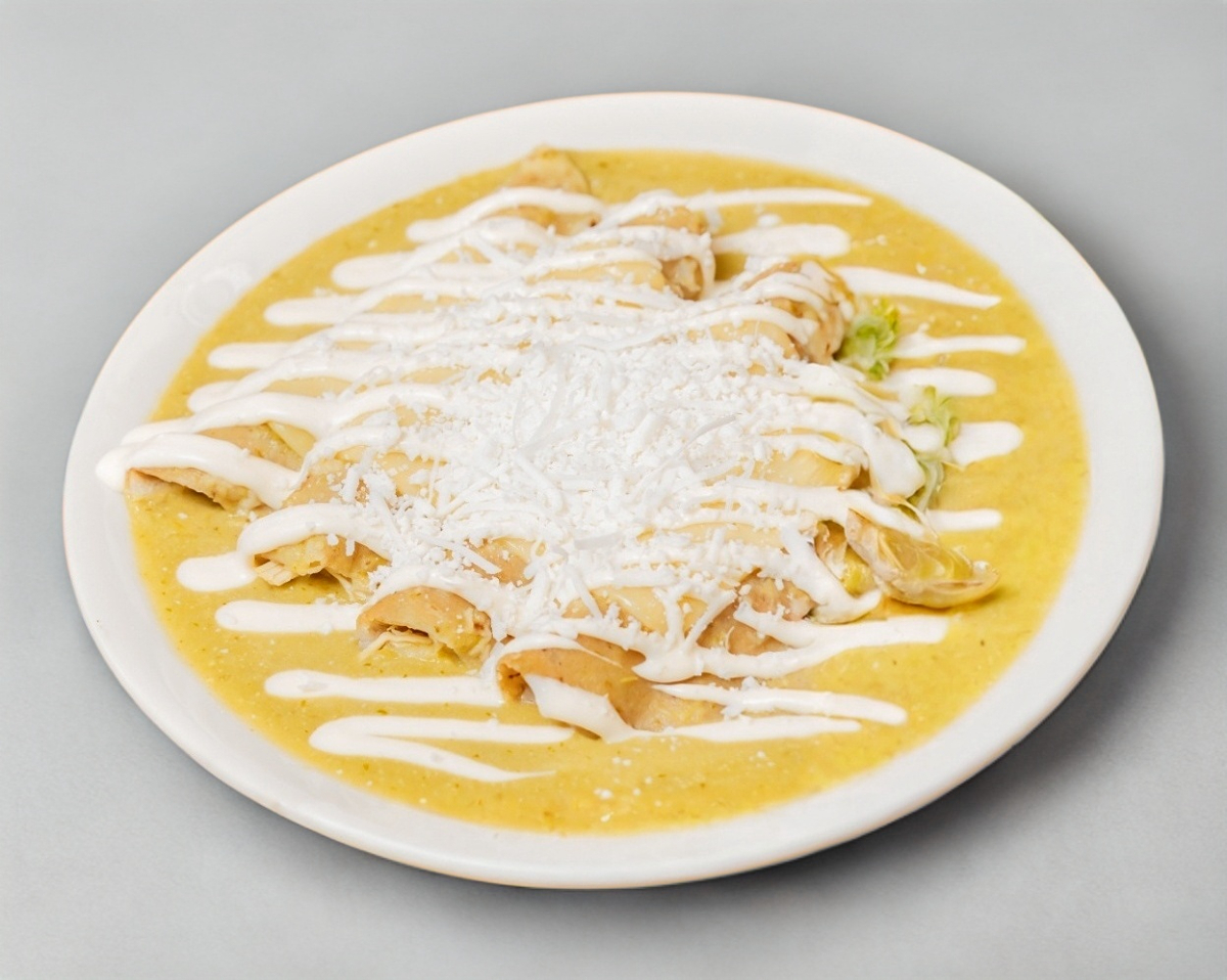 Tortillas de maíz rellenas de pollo, bañadas en salsa roja, verde, habanero, frijol o mole. Servidas con lechuga, crema, queso y cebolla. Un clásico mexicano lleno de sabor y tradición.