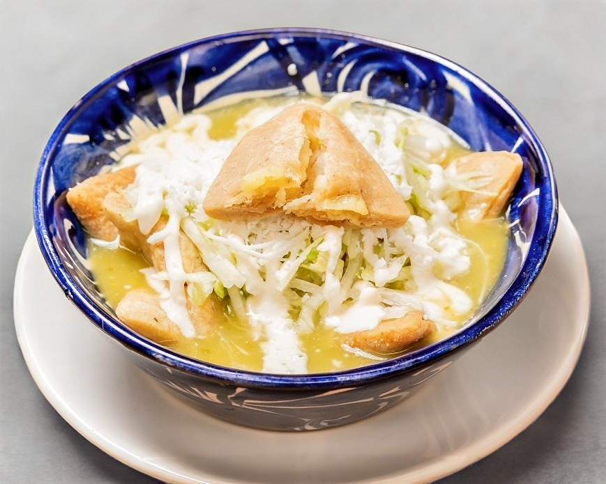 Totopos crujientes rellenos de queso, pollo o cochinita pibil, bañados en salsa roja, verde o habanero y acompañados de crema, queso y lechuga. Un giro novedoso y delicioso a un clásico platillo mexicano.
