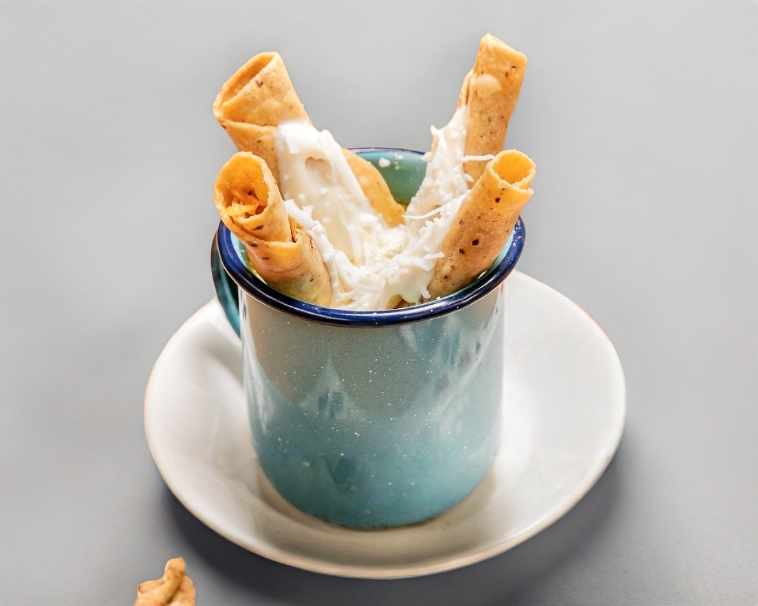 Tortillas de maíz rellenas de pollo y fritas hasta quedar crujientes. Servidos con lechuga, crema, queso y salsa. Un antojito mexicano irresistible y lleno de sabor. 3 pzas.