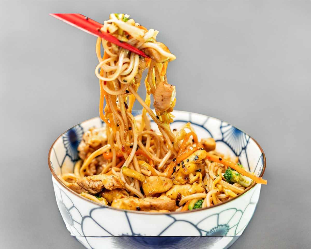Fideos salteados con vegetales y proteína al gusto, mezclados con una sabrosa salsa ligeramente picante y aceite de sésamo. Un clásico chino con una textura suave y llena de umami.