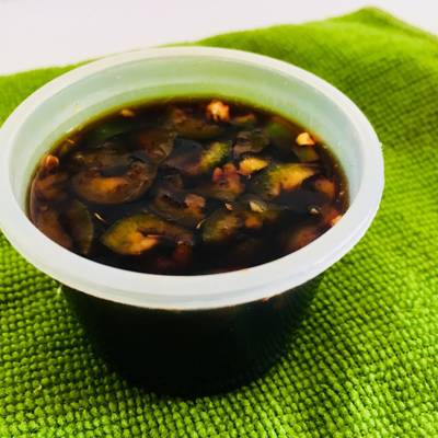 Aguacate por fuera bañado con salsa agridulce por fuera camarón , Tampico y queso crema por dentro