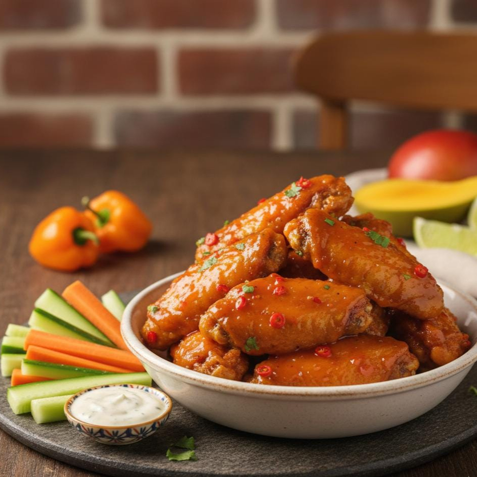 6 piezas Alitas Bañadas Con Tu Salsa Favorita y con verdura a Elegir