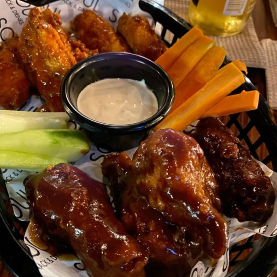 9 Alitas Bañadas con la Salsa de tu Preferencia y Verdura a Elegir