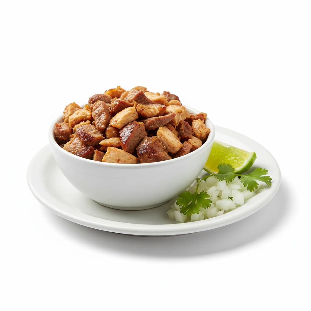 Elaborada con carnitas de cerdo, bañada en salsa no picante y cebollitas moradas encurtidas.